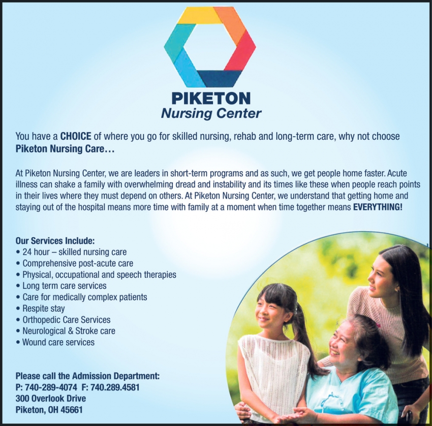 Nov 26, 2023. Piketon Nursing Center Associations & Organizations Ads from The Pike County News Watchman