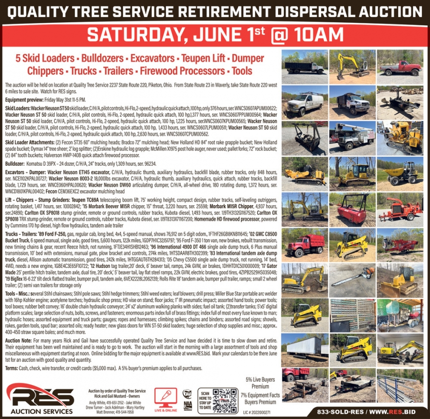 Quality Tree Service Retirement Dispersal Auction