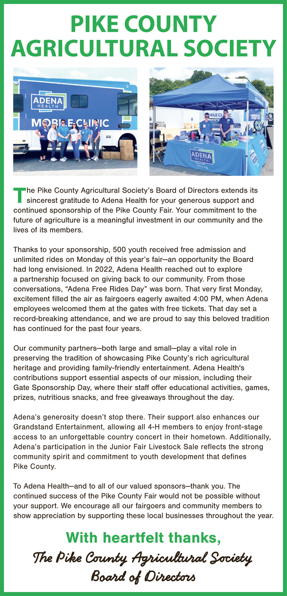 Thank You Announcement in Pike County