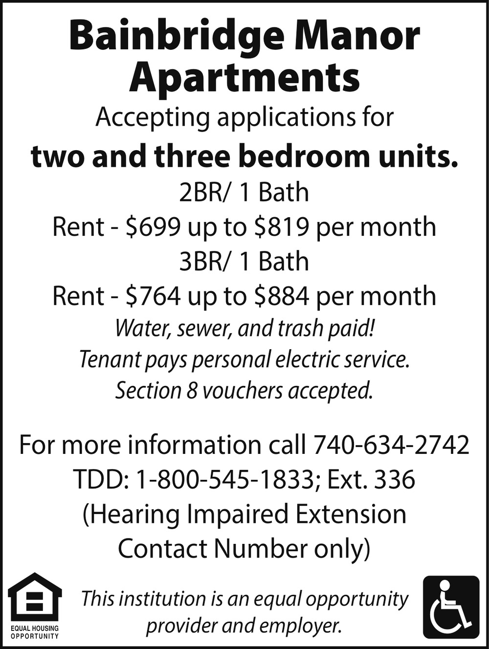 Jan 14, 2026. Bainbridge Manor Apartments Real Estate Ads from The Pike County News Watchman