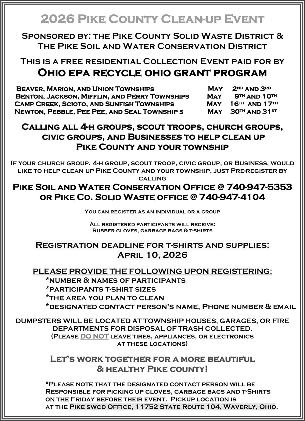 740-947-4104116 S. Market Street, Suite 103Waverly, OH 45690(Pike County Solid Waste Management District)