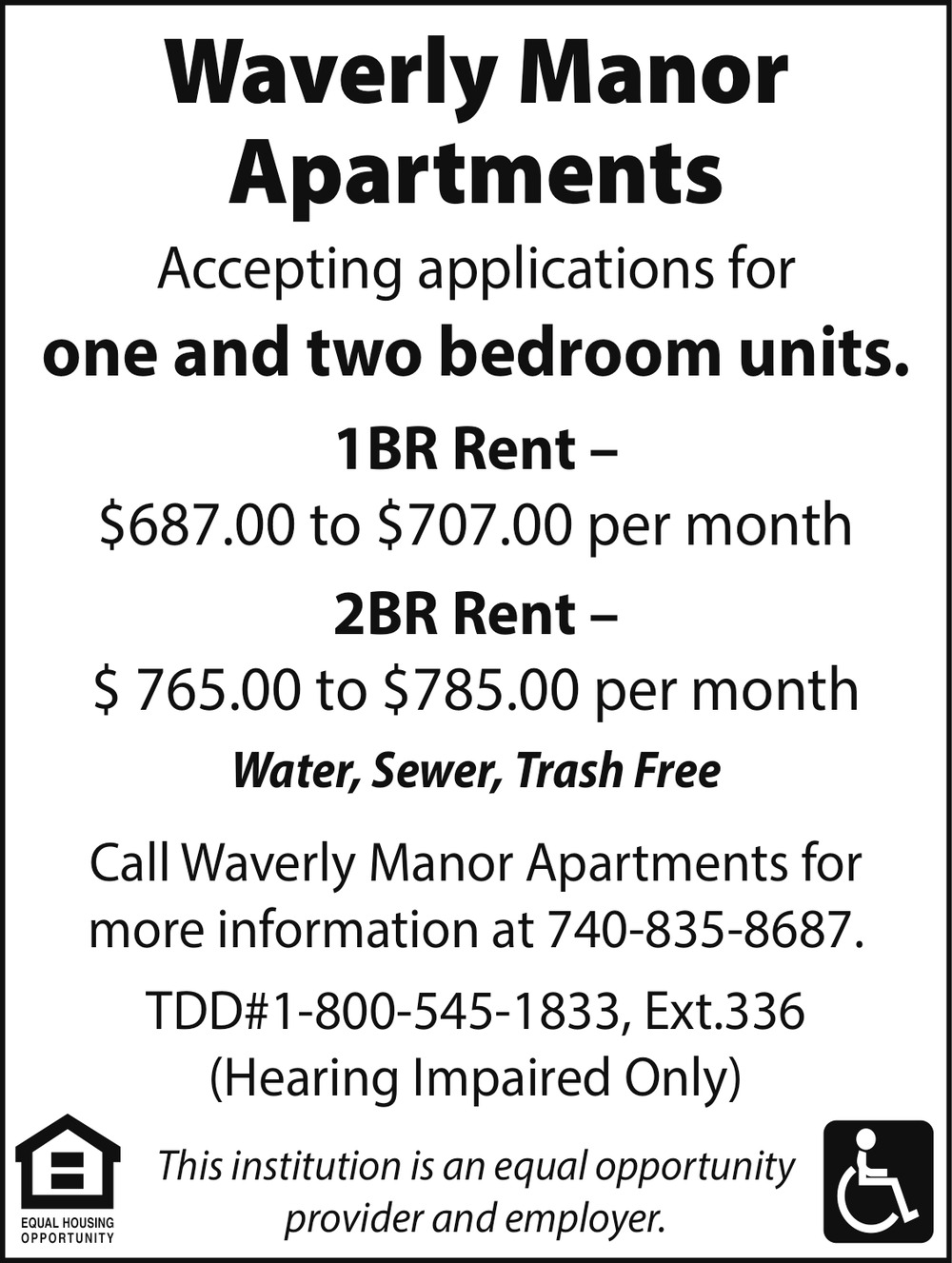 Apr 15, 2026. Waverly Manor Apartments Real Estate Ads from The Pike County News Watchman