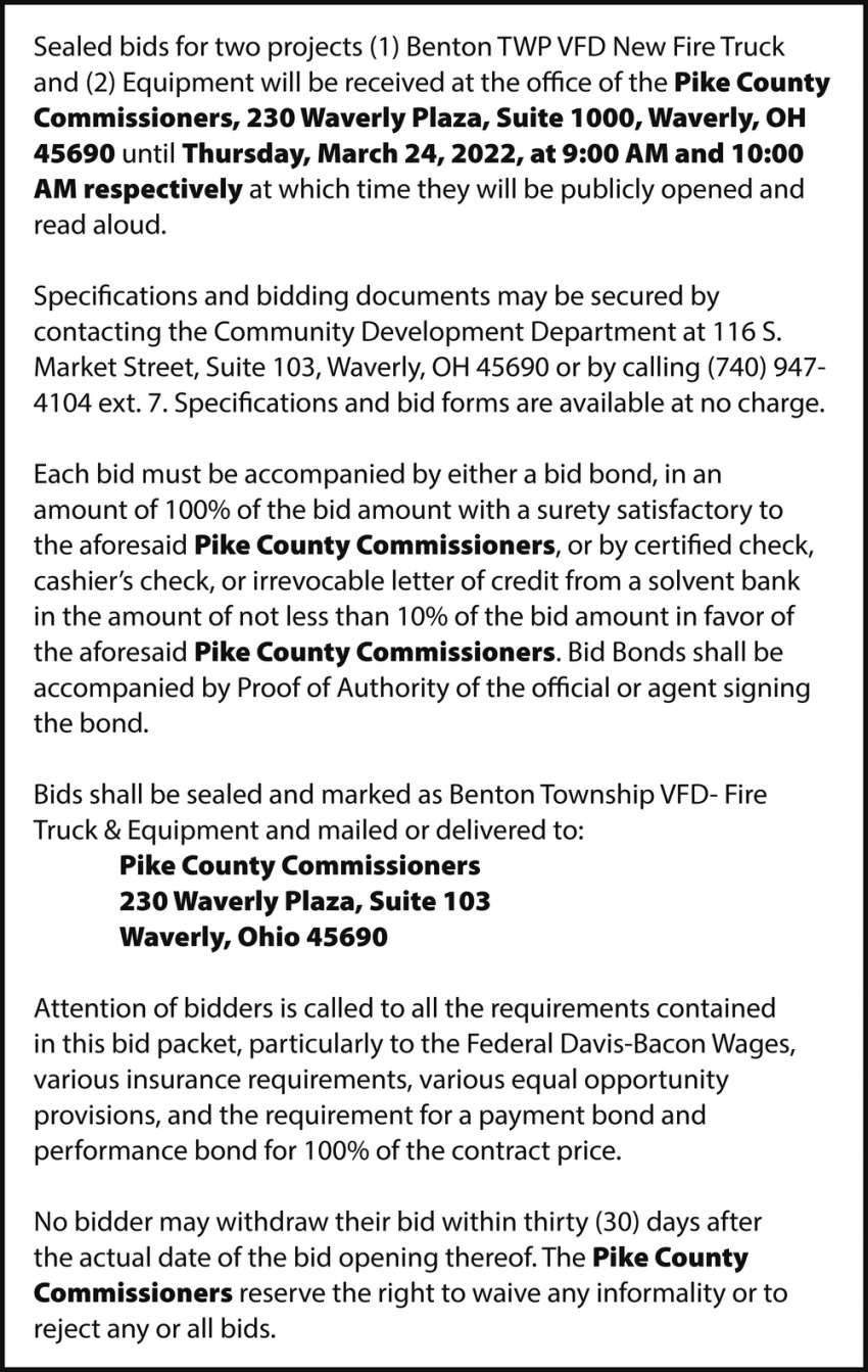 Mar 06, 2022. Pike County Commissioners Government Ads from The Pike County News Watchman
